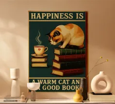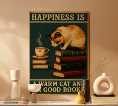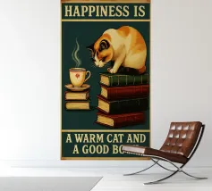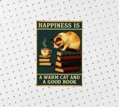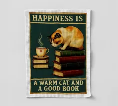 Gatto e libro La felicità è un gatto caldo e un buon libro