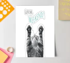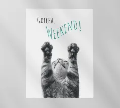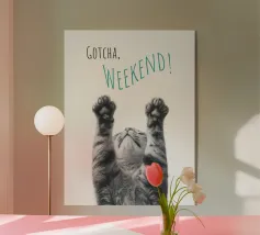 Finalmente il fine settimana! Questo umoristico motivo a forma di gatto porta il buon umore sulla parete con energia, umorismo e un pizzico di dolce determinazione. Perfetto per chi vuole celebrare il conto alla rovescia per il weekend o semplicemente portare un sorriso nella vita di tutti i giorni. Il design minimalista combina una tipografia moderna con illustrazioni dettagliate ed è un must per i fan dei gatti, i sognatori e gli spiriti liberi, perché tutti si meritano il fine settimana.