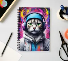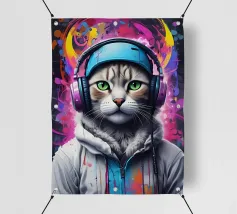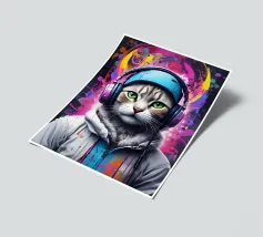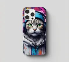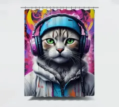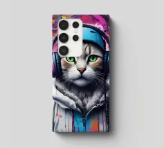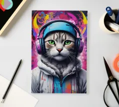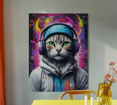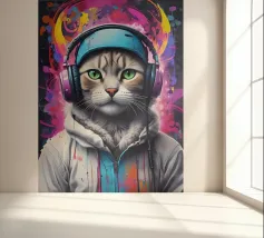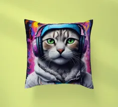 Gatto occhi verdi in cuffia