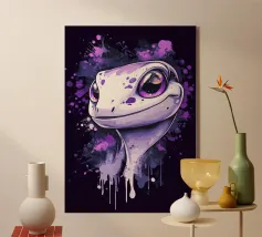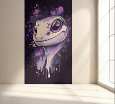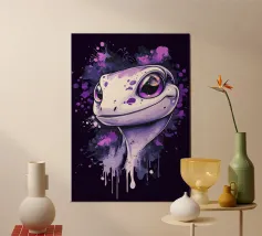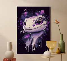 Questo affascinante motivo a forma di geco combina la chiarezza grafica con audaci spruzzi di colore viola e uno stile leggermente comico. L'aspetto allegro dell'animale attira immediatamente l'attenzione e conferisce all'immagine un'aura positiva, quasi giocosa. Gli effetti splash sullo sfondo creano dinamismo e modernità, ideali per soggiorni alla moda, camere per bambini o studi creativi. Perfetto per gli amanti dei rettili, per gli appassionati di street art o per chi cerca un accento speciale. Quest'opera è sinonimo di gioia di vivere, unicità e coraggio colorato.