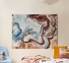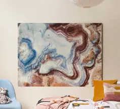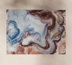All'interno, le fasce di agata si alternano in strati di colore ipnotici, che vanno dai bianchi e grigi tenui ai ricchi viola, blu e marroni. Gli strati traslucidi dell'agata formano delicati disegni, ognuno dei quali è stato modellato dal tempo e dall'acqua ricca di minerali. Insieme, il geode e l'agata mostrano l'arte della natura, dove la pietra ordinaria diventa un tesoro di luce, colore e forma".