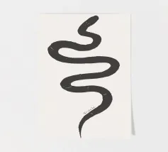 Gesso organico bianco Carbone grigio scuro nero Astratto minimalista Boho Snake Anno del serpente, nello stile del deserto di Joshua Tree, Bali e Tulum Messico Decor.