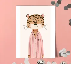 Ghepardo in pigiama, stampa da parete per bambini, stampa per cameretta