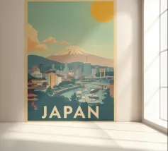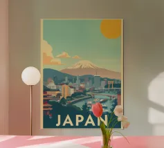 Un poster di viaggio senza tempo ispirato al fascino del Giappone, che cattura scenari iconici in uno stile retrò vintage. Con un'armoniosa miscela di colori e composizioni, quest'opera d'arte porta alle vostre pareti vibrazioni nostalgiche e voglia di viaggiare - perfetta per i viaggiatori, gli amanti del design o chiunque sogni il Giappone.