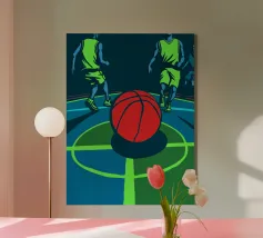 Illustrazione di azione per il basket - Dinamica e coinvolgente. Catturate i momenti emozionanti del gioco del basket con questa illustrazione ricca di azione!