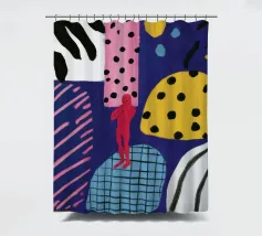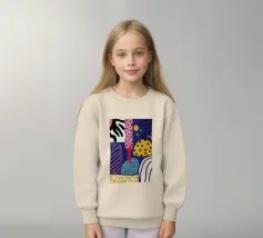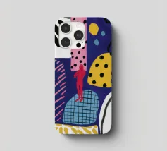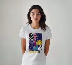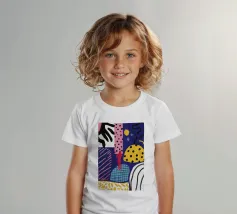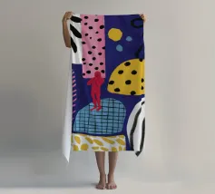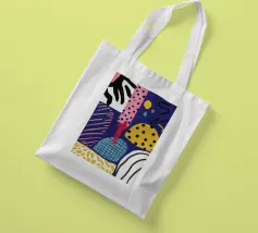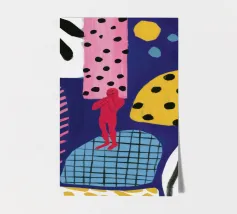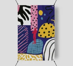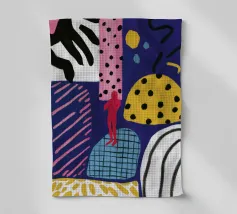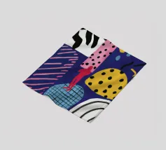Un collage astratto vibrante ed eclettico caratterizzato da un mix di motivi audaci, tra cui righe, stampa ghepardo e pois. La composizione è un'espressione giocosa ed energica di uno stile moderno bohémien o massimalista.