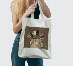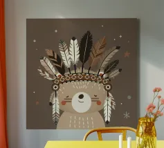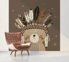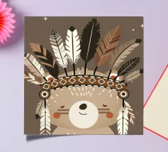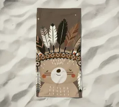 Questo motivo dettagliato mostra un simpatico orso con elaborati gioielli di piume, disegnati in tonalità naturali della terra. L'incantevole combinazione di piume e motivi geometrici conferisce all'illustrazione un moderno look boho. Con la sua espressione rilassata e la palette di colori armoniosa, il disegno irradia calma e calore.Simpatico orso con decorazione di piume dettagliata Tavolozza di colori armoniosa nei toni della terra Design moderno con carattere boho Bella combinazione di motivi e piume Ideale per gli appassionati di motivi naturalistici morbidi