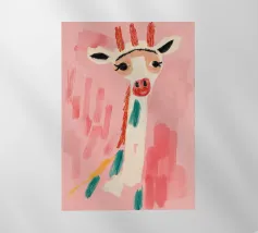 Questa giraffa ha stile e personalità! Con i suoi grandi occhi, le macchie colorate e le pennellate irregolari, strappa subito un sorriso. Lo sfondo rosa e lo stile pittorico espressivo rendono il quadro un affascinante mix di arte per bambini e umorismo da galleria. Ideale per le camere dei bambini, per gli spazi creativi o come regalo.