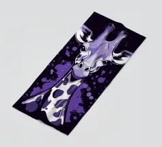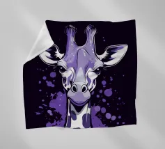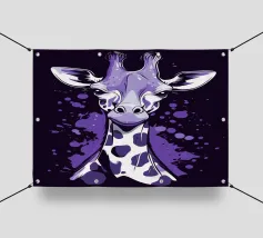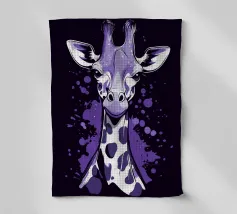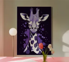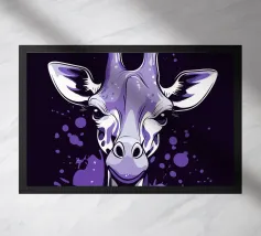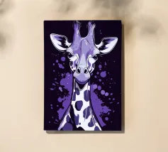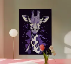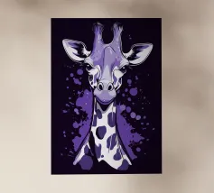 Una giraffa insolitamente messa in scena guarda l'osservatore con un sorriso affascinante - il tutto nei toni del viola e della lavanda, con uno sfondo di spruzzi di colore. Questa opera d'arte pop e giocosa si distingue chiaramente per la scelta dei colori e la rappresentazione astratta. È ideale per gli spazi moderni, le stanze dei giovani o gli uffici creativi ed è particolarmente interessante per le persone che amano le illustrazioni di animali insoliti o la pop art colorata.