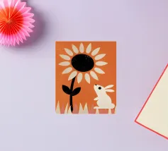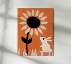 Girasole e coniglio Retro Pop: la bellezza dei girasoli e la simpatia dei conigli in un unico design! Godetevi la bellezza di un girasole luminoso e di un adorabile coniglio in questo moderno design retro pop.