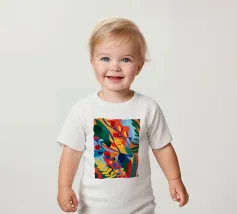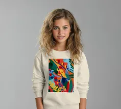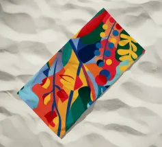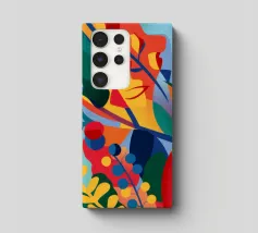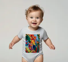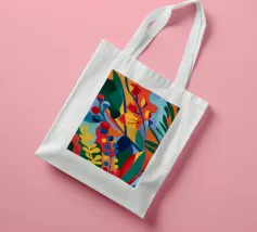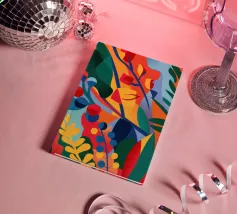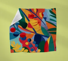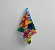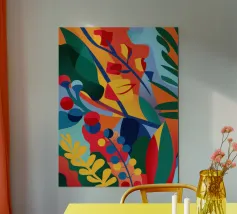 Una fitta e vibrante mescolanza di foglie astratte della giungla e di frutti colorati e stilizzati crea un motivo ricco ed energico che sprizza vita, colore e sapore tropicale.