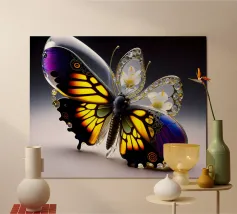 "Glass Butterfly" è un'opera d'arte digitale in computer grafica. La farfalla sembra essere fatta di vetro trasparente, con le ali che brillano di delicati riflessi di luce e morbide sfumature di colore. I dettagli sottili e le linee chiare le conferiscono una bellezza elegante, quasi fragile. La combinazione di leggerezza e brillantezza crea un'atmosfera magica. "Glass Butterfly" mostra come l'arte digitale combini trasparenza e fragilità in un'affascinante composizione visiva.