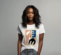 Un'audace opera astratta caratterizzata da un insieme di forme primordiali in bianco e nero su uno sfondo neutro, che evoca un senso di antichi glifi o calligrafie.