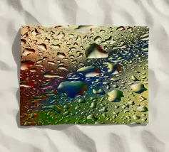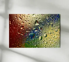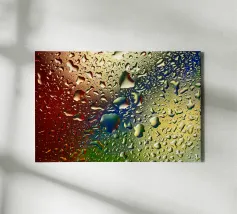"Farbtropfen" trasforma le gocce d'acqua in un mosaico colorato. Un'opera d'arte astratta e moderna che cattura immediatamente l'attenzione con i suoi colori intensi e le sue strutture organiche. Perfetta per spazi abitativi creativi e vivaci.