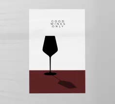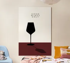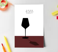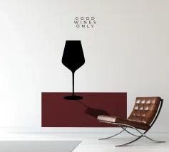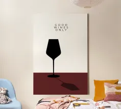 Un bicchiere da vino dal design moderno e decorativo con il simpatico slogan "GOOD WINES ONLY" per tutti coloro che amano gustare un bicchiere di vino rosso con gli amici la sera.