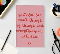 Grateful for small things big things and everything in between, citazione motivazionale, vibrazioni positive, tipografia