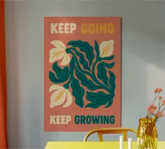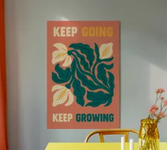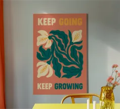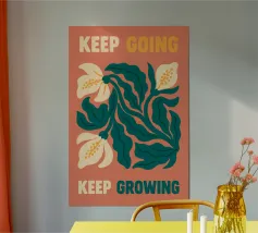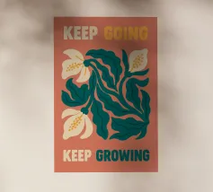 "Continua ad andare avanti, continua a crescere": questo poster combina parole forti con illustrazioni floreali nei toni della terra. L'armoniosa combinazione di colori e il messaggio ispiratore lo rendono il compagno ideale per l'ufficio, la camera da letto o gli spazi creativi. Perfetto per chi ama la motivazione, con un tocco di natura e un grande senso del design. Una stampa per la crescita, il coraggio e la forza interiore.