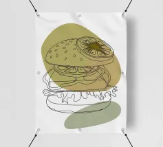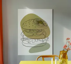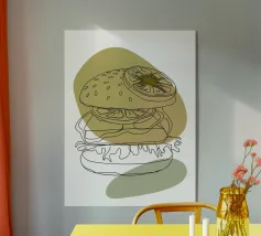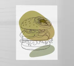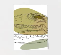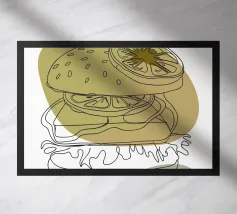 Illustrazione "Burger minimalista": Elegante semplicità! Questo design minimalista presenta un hamburger con dettagli puliti e moderni.