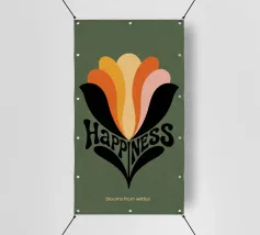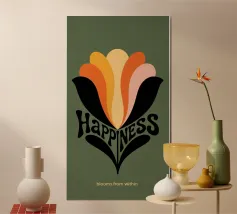 Questa immagine è un appello! Fate ciò che vi rende felici e sboccerete. Questo quadro allegro e floreale è disponibile in verde, nero, arancione, giallo e rosa.