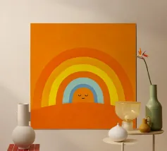 Portate l'ottimismo nel vostro spazio con questo disegno di ispirazione rétro che raffigura un arcobaleno con una faccia sorridente. Un perfetto ritorno all'epoca della pace, dell'amore e dello stile funky, questa opera d'arte unisce il fascino nostalgico all'energia giocosa. Che si tratti di arredare un dormitorio, uno studio o il vostro angolo di relax preferito, questa stampa vivace dà un tono divertente e senza paura.