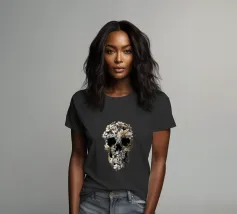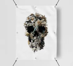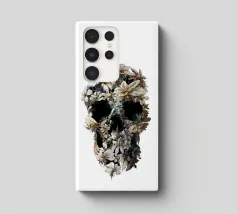 Teschio composto da elementi floreali di ispirazione steampunk di Ali Gulec