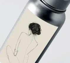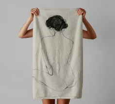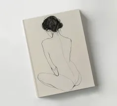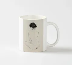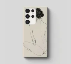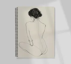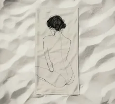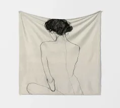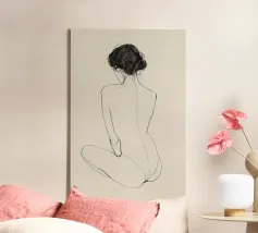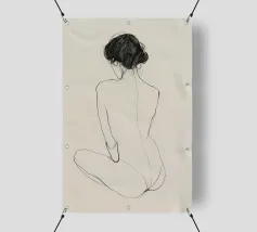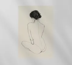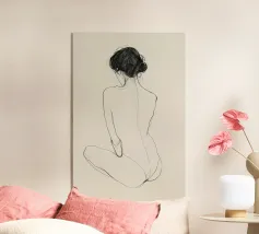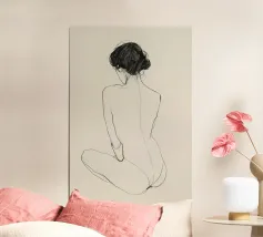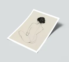 Il disegno al tratto minimalista di una donna seduta in morbide tonalità della terra incarna lo stile boho e celebra la bellezza del corpo femminile con elegante semplicità. La vista posteriore e il sottile erotismo aggiungono un tocco sensuale all'illustrazione.