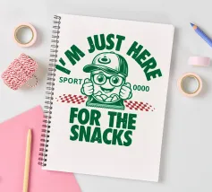 Un personaggio dei cartoni animati con cappello e occhiali è raffigurato con un'espressione giocosa. Il testo sopra e sotto il personaggio recita: "SONO QUI SOLO PER LE MERENDINE".