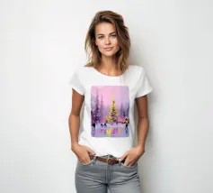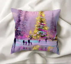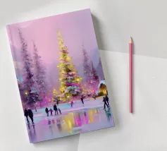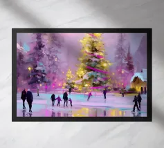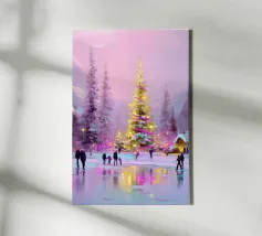Una festosa scena alpina in cui le famiglie scivolano su una pista ghiacciata mentre al centro risplende un imponente albero di Natale. Le pennellate morbide e impressionistiche e la luce delicata creano un'atmosfera invernale da sogno: pini innevati, aria frizzante e riflessi scintillanti sul ghiaccio. Moderno ma nostalgico, cattura l'unione e la tranquilla magia della stagione.