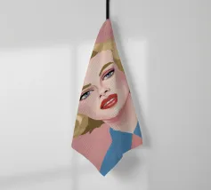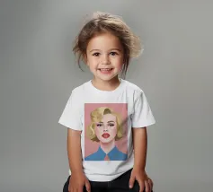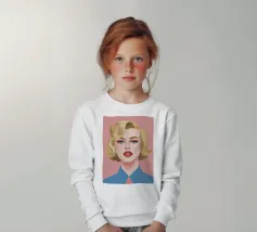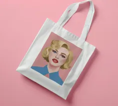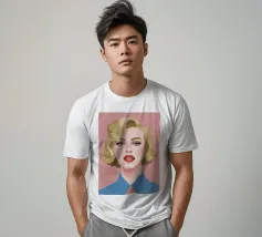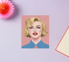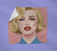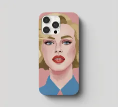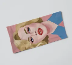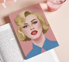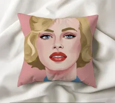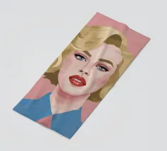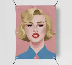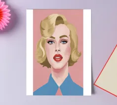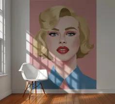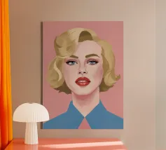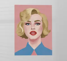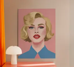 Un ritratto pop art glamour di un'icona bionda, che cattura la sua famosa bellezza e misticismo con colori audaci e un'espressione riflessiva.