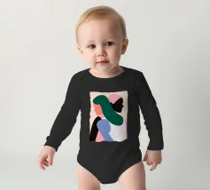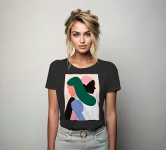 Un'opera d'arte astratta moderna che presenta due sagome sovrapposte, simbolo di unità e dualità. La composizione audace ma minimale fonde colori tenui e ricchi, creando un'armonia visiva. Questo pezzo evoca i temi della connessione, dell'identità e della coesistenza in uno stile contemporaneo.