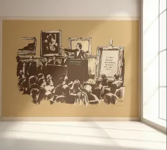 Questo stencil satirico di Banksy raffigura un'affollata casa d'aste dove un testo incorniciato recita: "NON POSSO CREDERE CHE VOI IDIOTI COMPRIATE DAVVERO QUESTA MERDA". Si tratta di un commento sprezzante sulla commercializzazione dell'arte e sulla percepita mancanza di gusto tra i collezionisti di alto livello. L'opera mette in discussione il valore e l'autenticità attribuiti all'arte dal mercato.