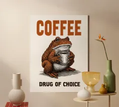 L'autoironia umoristica incontra la maestria del tratto: questo affascinante lavoro combina l'estetica dell'incisione vittoriana con l'arguzia contemporanea. Il tratteggio dettagliato e la precisione anatomica del rospo ricordano le antiche illustrazioni scientifiche, mentre il messaggio traspira pura cultura contemporanea. La tavolozza di colori caldi nei toni del marrone e del beige sottolinea perfettamente il tema del caffè. L'atteggiamento stoico del rospo - a metà tra la meditazione e la dipendenza - parla all'anima di ogni amante del caffè. Tecnicamente brillante, concettualmente spiritoso, visivamente irresistibile.