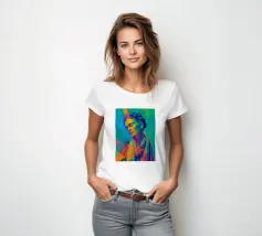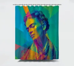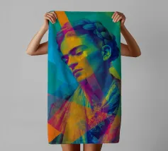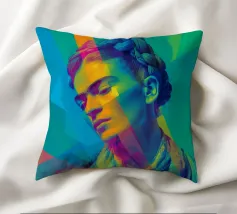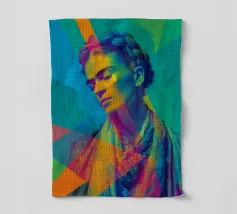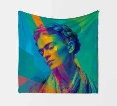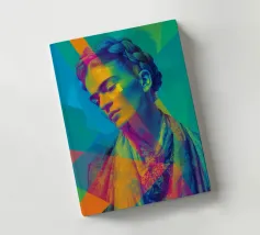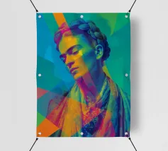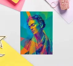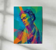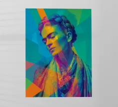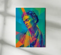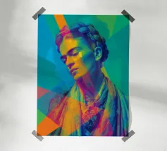 Questo coloratissimo ritratto di Frida Kahlo combina linee geometriche ed elementi olografici in colori vivaci come il rosa, il blu e il giallo. Con il suo caratteristico cerchietto e i capelli intrecciati, l'iconica artista risplende in uno stile moderno e astratto che cattura perfettamente luci, linee e ombre.