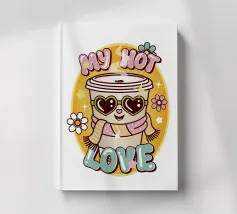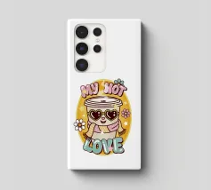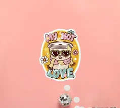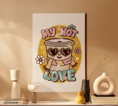 Illustrazione super carina in stile kawai di una tazza di caffè con un testo divertente in stile retrò