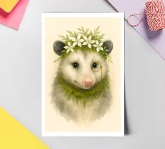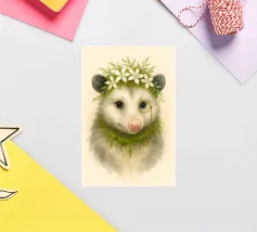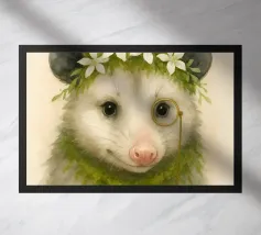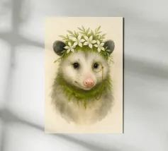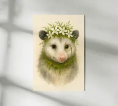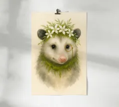 Chi dice che l'eleganza è solo per gli umani? Ecco questo studioso opossum vestito a festa con una delicata corona floreale e un monocolo dorato. Questa illustrazione ad acquerello fonde morbide tonalità naturali con una giocosa raffinatezza, creando un mix perfetto di carineria e classe. Ideale per gli appassionati di ritratti di animali stravaganti, di decorazioni ispirate alla natura o per tutti coloro che credono che l'intelligenza sia ancora più bella con i fiori. Un'aggiunta deliziosa a pareti, quaderni e abbigliamento con personalità!