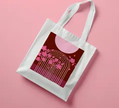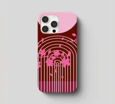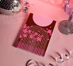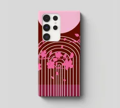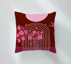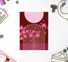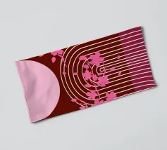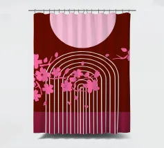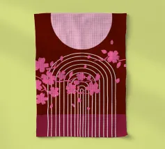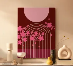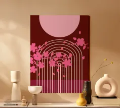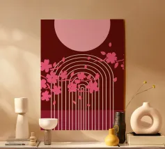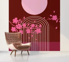 Un elegante sakura bordeaux di metà secolo, caratterizzato da un'eleganza floreale retrò, perfetto per decorazioni e regali di ispirazione vintage.