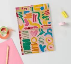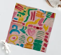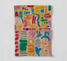 Tamponi e forme sciolte creano una danza ritmica di impressioni astratte e texture di colore.