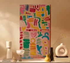 Explore the dynamic relationship between bold geometry and vibrant color. My work merges structured forms with fluid compositions, creating a visual symphony of movement and expression. Inspired by contemporary design and playful abstraction, I blend sharp edges, rhythmic patterns, and layered textures to evoke emotion and harmony, where art becomes a celebration of energy, creativity, and limitless imagination.