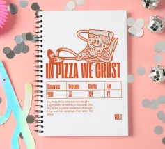 Descrizione del prodotto: Per tutti gli amanti della pizza e dei giochi di parole: Il disegno "In Pizza We Crust" unisce umorismo e stile. Con una fetta di pizza da cartone animato e una tabella nutrizionale ironica, questo motivo celebra l'arte della pizza in modo affascinante. Lo stile retrò di colore arancione conferisce al disegno una personalità inconfondibile e lo rende un perfetto richiamo visivo. Dettagli: Stile del disegno: Illustrazione umoristica a fumetti con un tocco vintage. Colore: arancione su nero per un'estetica vivace e accattivante. Messaggio: La pizza non è solo cibo.