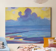 By the Sea (1909) di Piet Mondrian - Stampa di paesaggio marino dei primi anni del Novecento, arte murale espressionista sull'oceano, poster d'arte per arredamento nautico, costiero o minimalista Scoprite il primo lato espressivo di Piet Mondrian con By the Sea (1909), un raro e potente paesaggio marino del suo periodo di transizione prima di abbracciare l'astrazione geometrica. Dipinto con pennellate audaci e ritmiche e con profondi blu, questo suggestivo panorama oceanico cattura la forza emotiva della natura attraverso la lente modernista in evoluzione di Mondrian. Quest'opera d'arte è ideale per gli appassionati del primo modernismo, dei paesaggi espressionisti e del sofisticato design.
