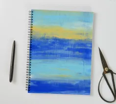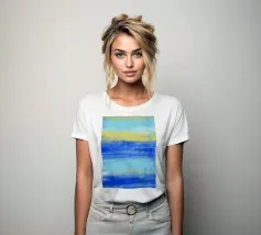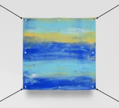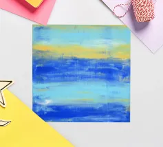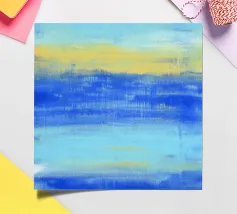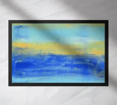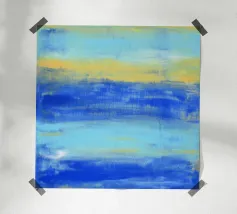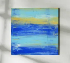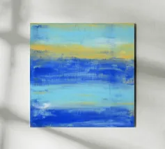 At the Beach" La natura pacifica della spiaggia ... I toni astratti del blu e del turchese mirano a creare un'atmosfera rilassata e tranquilla. Guardando il mio quadro in cui l'acqua, il sole e l'orizzonte si fondono, l'immagine crea una sensazione di apertura e vastità. - Questo quadro è un originale dipinto a mano da me - non un prodotto AI, ma un'espressione di genuina creatività umana. - - Dipinto originale in acrilico su tela disponibile qui come stampa di alta qualità. -
