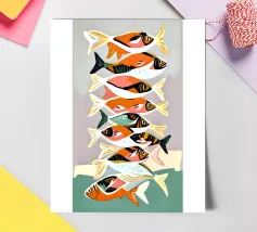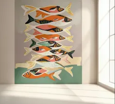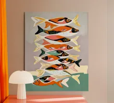 Vi presentiamo la nostra incantevole stampa fine art con un delizioso gruppo di sardine colorate eclettiche e stravaganti. Questa vibrante opera d'arte cattura l'essenza giocosa di questi affascinanti pesci, ognuno dei quali è ornato da una tavolozza unica di tenui colori pastello che danzano sulla tela. Le sardine, con le loro espressioni stravaganti e i loro disegni fantasiosi, portano un senso di gioia e di estrosità in ogni spazio.
