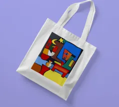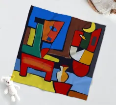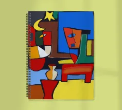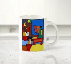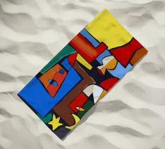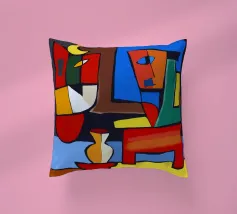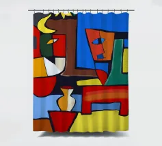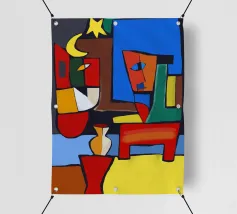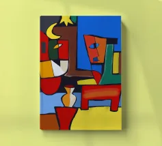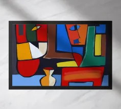 Colori vivaci e forme astratte si uniscono per formare quella che sembra la rappresentazione frammentata di una scena, forse una stanza con degli oggetti. Le linee decise e le tonalità contrastanti conferiscono all'opera un'atmosfera dinamica e moderna.