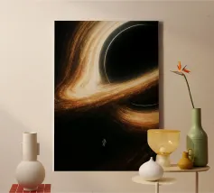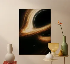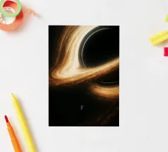 Esplorate le profondità dello spazio con questo poster ispirato a Interstellar, con l'astronauta solitario Cooper e l'impressionante buco nero Gargantua. Una miscela cosmica di stelle, galassie e la brillantezza della fantascienza del film di Christopher Nolan, perfetta per gli amanti dell'astronomia e del cinema hollywoodiano.