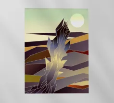 Isola vulcanica, paesaggio geometrico astratto.