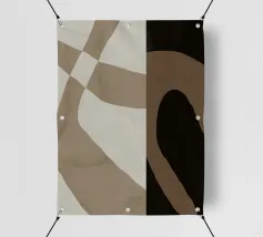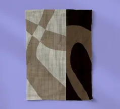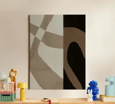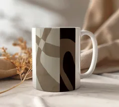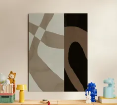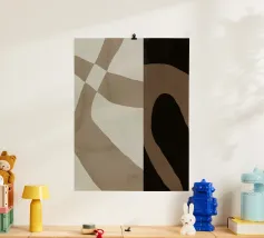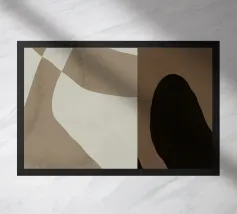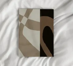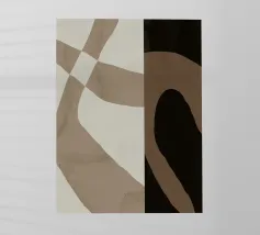 Forme curve e fluide in varie tonalità di beige, tortora e nero creano un senso di movimento e di forma astratta. La composizione offre un'estetica moderna e minimalista, utilizzando una palette di colori tenui per un impatto visivo rilassante.