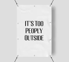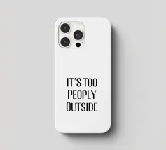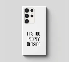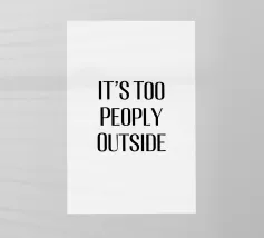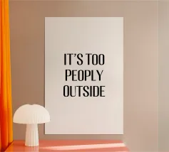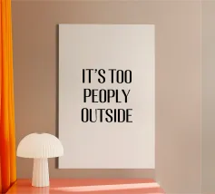 Questo divertente design presenta il testo "IT'S TOO PEOPLY OUTSIDE" in grassetto, in lettere maiuscole nere su sfondo bianco. Il carattere moderno e sans serif conferisce al disegno un aspetto pulito e contemporaneo. Il messaggio del disegno esprime con umorismo la sensazione di voler evitare la folla e i luoghi affollati. Questo design semplice ma efficace fa di questa opera d'arte un vero e proprio richiamo visivo che fa sorridere l'osservatore e al tempo stesso cattura un sentimento relazionabile.