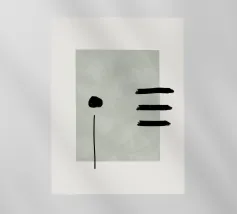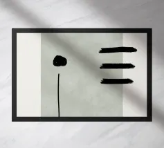 Opera d'arte japandi astratta e moderna di forma rettangolare con pennellate e texture nere. Arte minimalista in verde salvia per uno stile di vita bohémien, bohémien, industriale, japandi e moderno.