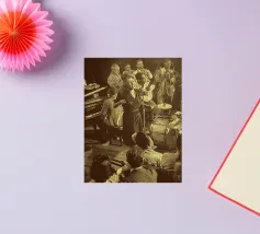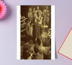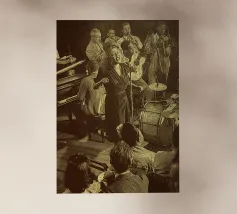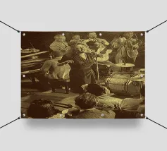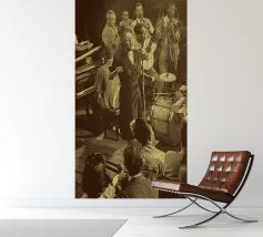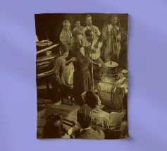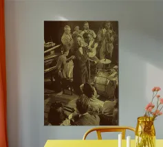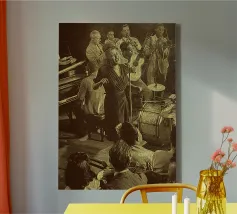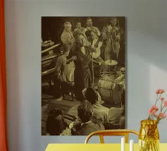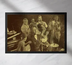 Una scena vibrante di Billie che guida la band: energia, ritmo e anima che irradiano da ogni pennellata.
