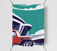 Sentite lo spirito dell'avventura! Questo design è caratterizzato da un'illustrazione dell'iconica Jeep